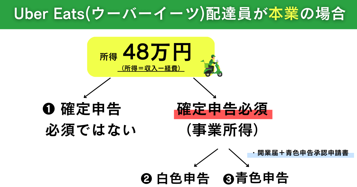 ウーバーイーツの配達員が副業である場合、所得が20万円を超えると確定申告が必要です。